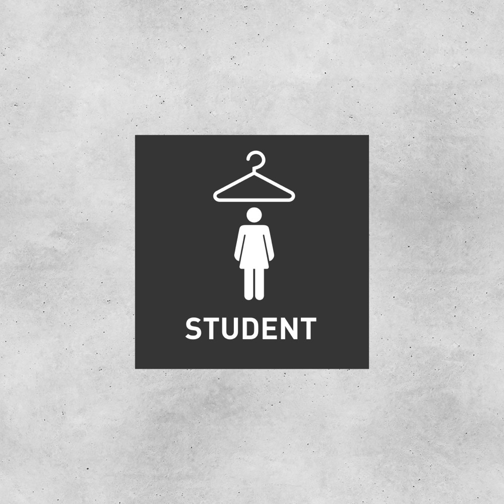 Piktogram og tekst som beskriver hvor i bygget du befinner deg, eller hva som er innenfor en dør. Feks. wc, garderobe, heis, etasje etc. Både piktogram og tekst er taktile, følbare og leveres med og uten punktskrift (Braille).